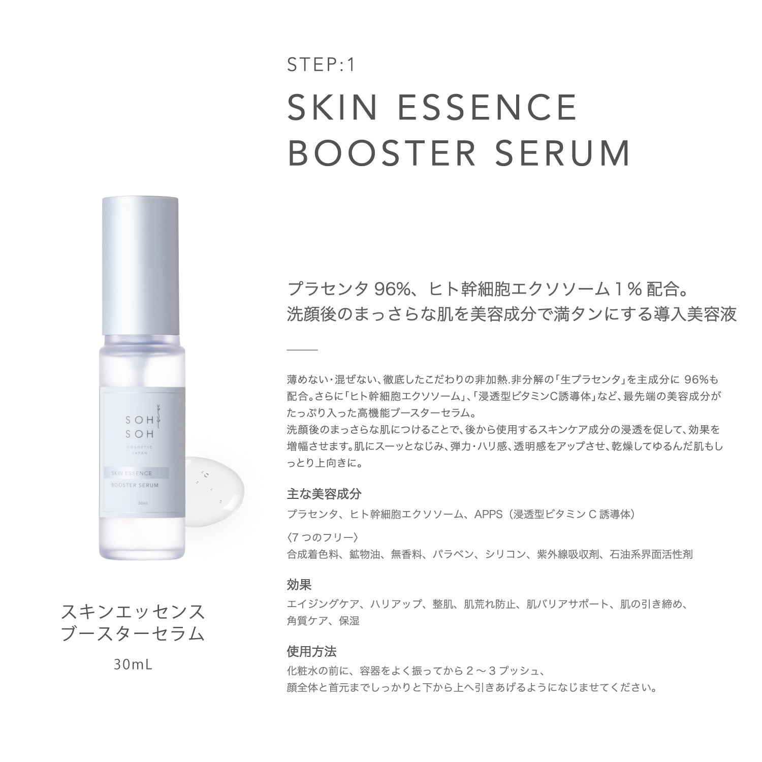 水、プラセンタエキス、BG、グリセリン、ペンチレングリコール、スクワラン、ヒト脂肪間質細胞エクソソーム、ヒアルロン酸Na、セラミドNG、シア脂、ホホバ種子油、ツボクサエキス、イタドリ根エキス、オウゴン根エキス、ローズマリー葉エキス、カミツレ花エキス、カンゾウ根エキス、チャ葉エキス、ツボクサ葉/茎エキス、アラントイン、酵母β−グルカン、DPG、1,2−ヘキサンジオール、水添レシチン、ビオサッカリドガム-1、メチオニン、PPG−4セテス−20、(アクリロイルジメチルタウリンアンモニウム/VP)コポリマー、ポリアクリレートクロスポリマー−11、t-ブタノール、ベンザルコニウムクロリド、水溶性プロテオグリカン、フェノキシエタノール